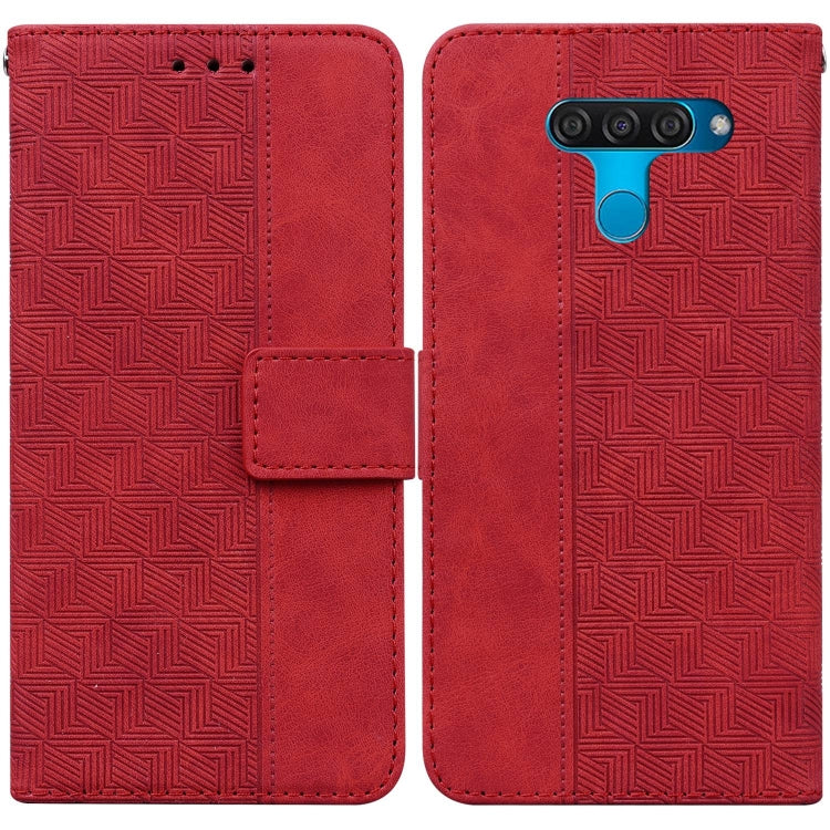 Funda de Cuero para LG K50 / Q60 con Relieve Geométrico (Rojo)
