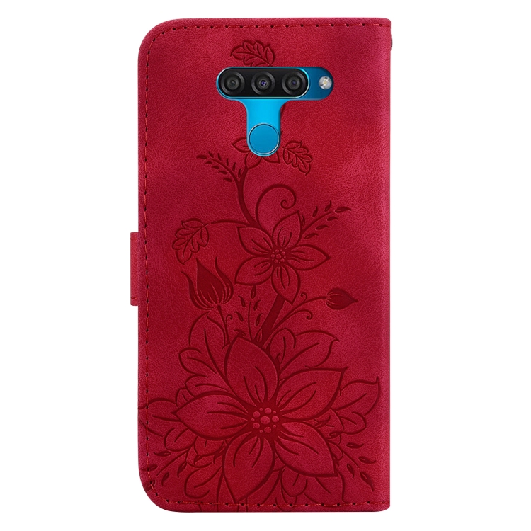 Funda para Teléfono LG K50 / Q60 Cuero con Relieve Lily (Rojo)