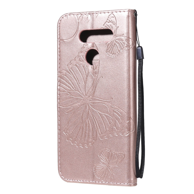 Funda de Cuero para LG K50S con Tapa Horizontal, Patrón Mariposa 3D, Soporte, Ranura Tarjeta, Billetera y Cordón (Oro Rosa)