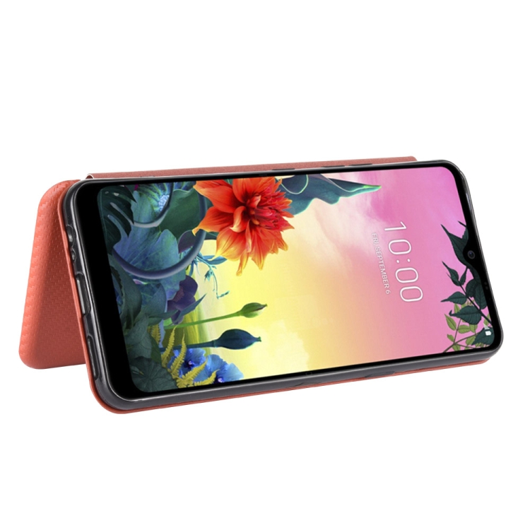 Funda de Cuero para LG K50S con Tapa Magnética Horizontal y Ranura para Tarjeta (Marrón)
