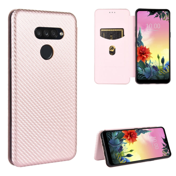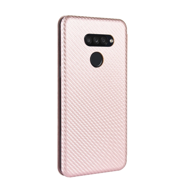 Funda de Cuero LG K50S con Tapa Magnética Horizontal Textura Fibra de Carbono TPU + PC + PU con Ranura para Tarjeta (Rosa)