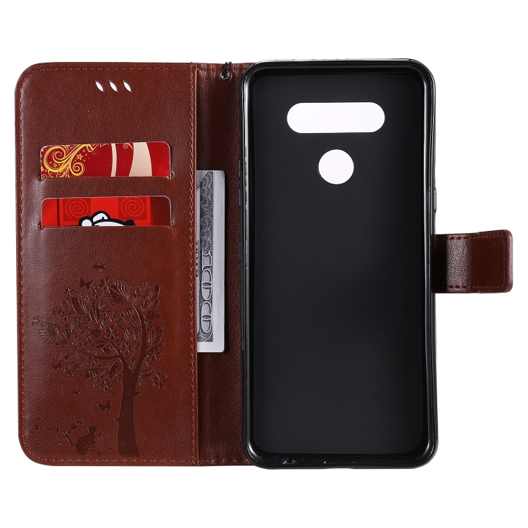 Funda de Cuero para LG K51 con Tapa Horizontal, Soporte, Ranuras para Tarjetas, Billetera y Cordón (Café)