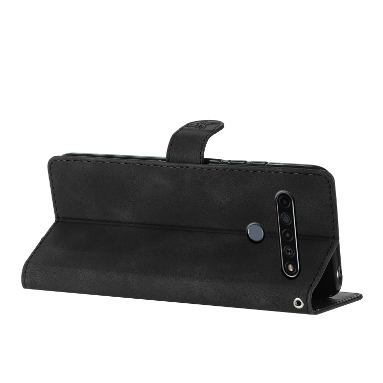 Funda de Cuero para LG K51S con Flor y Mariposa en Relieve (Negro)