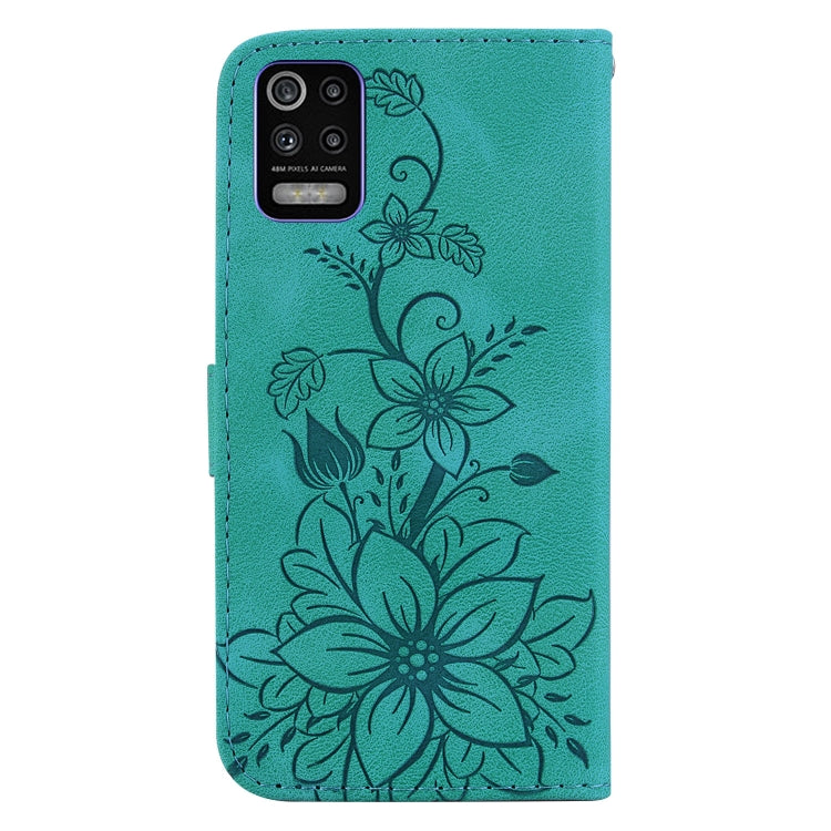 Funda para Teléfono LG K52 / K62 / Q52 Cuero con Relieve Lily (Verde)