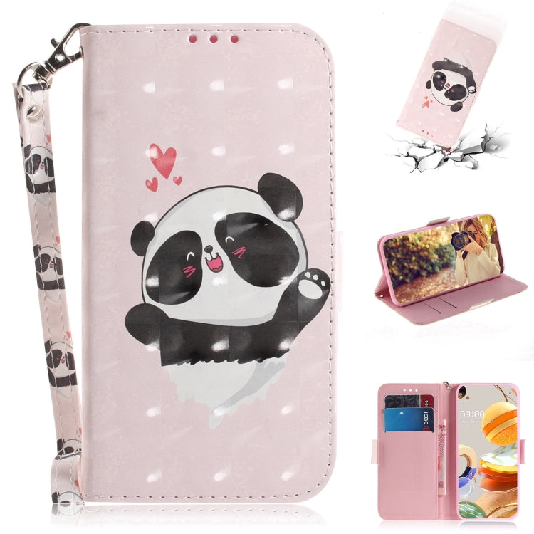 Funda de Cuero para LG K61 con Tapa Horizontal, Dibujo 3D, Soporte, Ranuras y Cordón (Heart Panda)