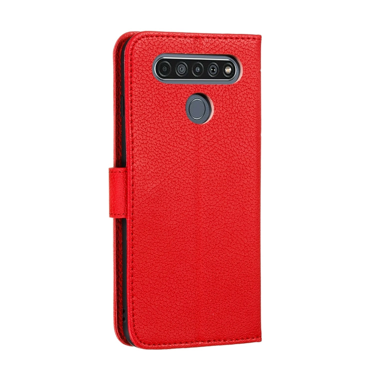 Funda de Cuero para LG K61 con Tapa Horizontal, Textura Litchi, Diseño Plumas, Billetera y Soporte