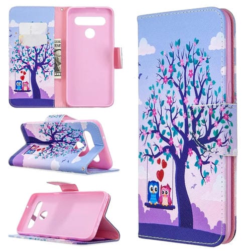 Funda de Cuero para LG K61 con Patrón de Dibujo Coloreado, Tapa Horizontal, Soporte y Ranuras para Tarjetas (Búho)