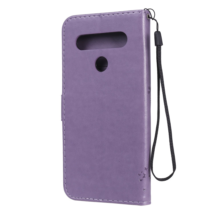 Funda de Cuero para LG K61 Tree & CAT con Tapa Horizontal, Soporte, Ranuras para Tarjetas y Cordón (Morado Claro)