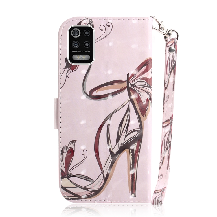 Funda de Cuero para LG K62 / K52 / Q52 con Tapa Horizontal, Dibujo 3D, Soporte, Ranuras y Cordón (Mariposa de Tacón Alto)