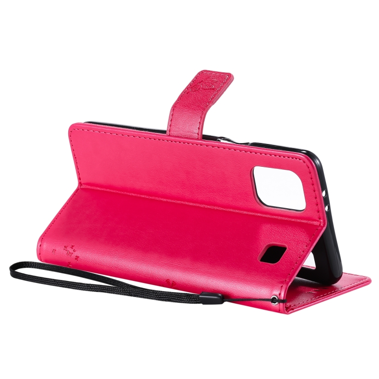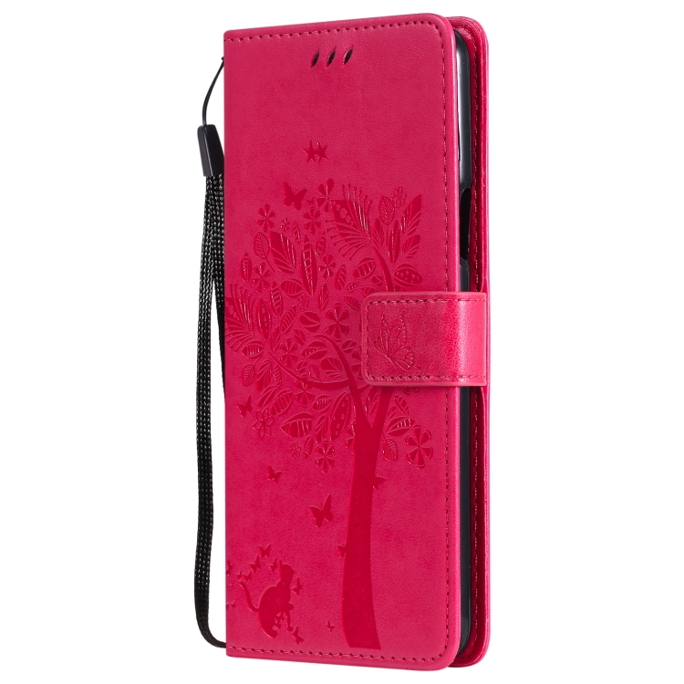 Funda para LG K92 5G con patrón Árbol y Gato, Cuero PU, Soporte, Ranuras y Cordón (Rose Rojo)