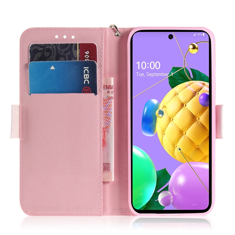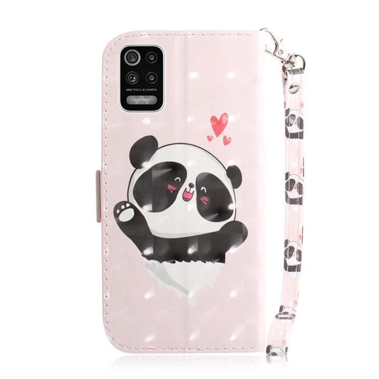 Funda de Cuero Abatible Horizontal para LG Q52 con Dibujo 3D, Soporte, Ranuras para Tarjetas y Cordón (Heart Panda)