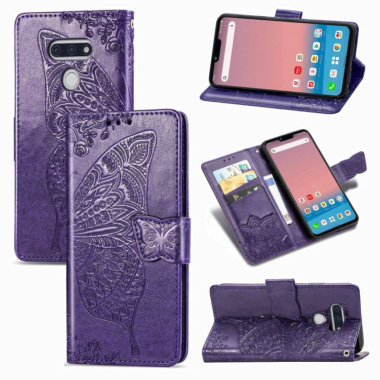 Funda de Cuero para LG Style3 L-41A Butterfly Love Flower con Tapa, Soporte, Ranura y Cordón (Morado Oscuro)