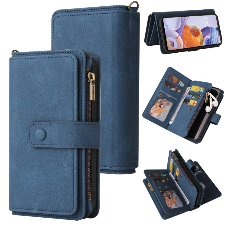 Funda de Cuero PU + TPU para LG Stylo 6 con Flip Horizontal, Titular, 15 Tarjetas, Wallet, Cripper Pocket y Lanyard (Azul)