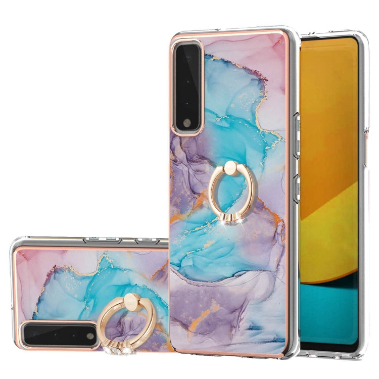 Funda TPU para LG Stylo 7 5G con Patrón Galvanoplastia, Soporte Anillo y Protección (Mármol Azul)