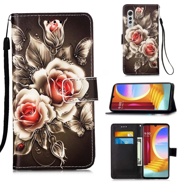 Funda de Cuero Horizontal Flip para LG Velvet 2 Pro con Titular, Tarjeta, Wallet y Lanyard (Roses On Black)