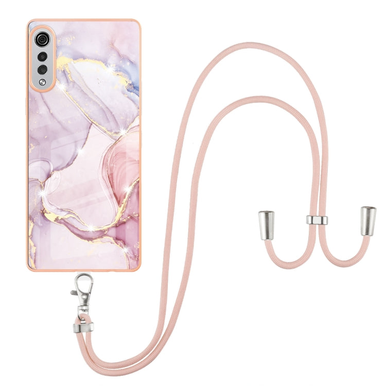 Funda TPU LG Velvet 4G 5G G9 Patrón Mármol Galvanoplastia a Prueba de Golpes con Cordillero (Oro Rosa)