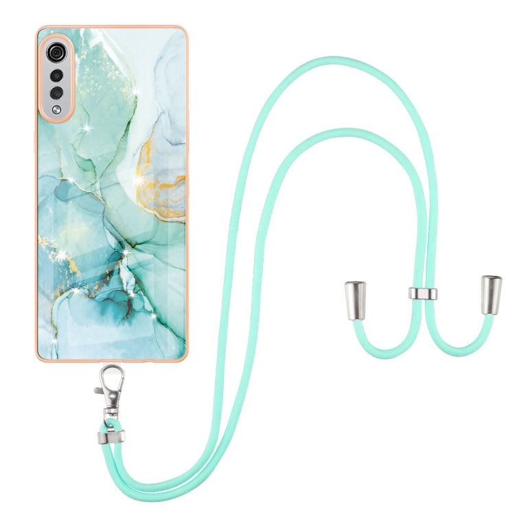 Funda TPU LG Velvet 4G 5G G9 Patrón Mármol Galvanoplatos a Prueba de Golpes con Cordillero (Verde)