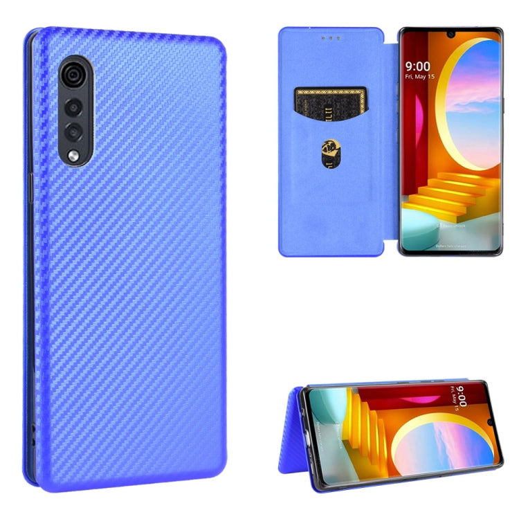 Funda para LG Velvet Carbon Fiber Texture Magnético Flip Horizontal TPU + PC + PU con Ranura para Tarjeta (Azul)