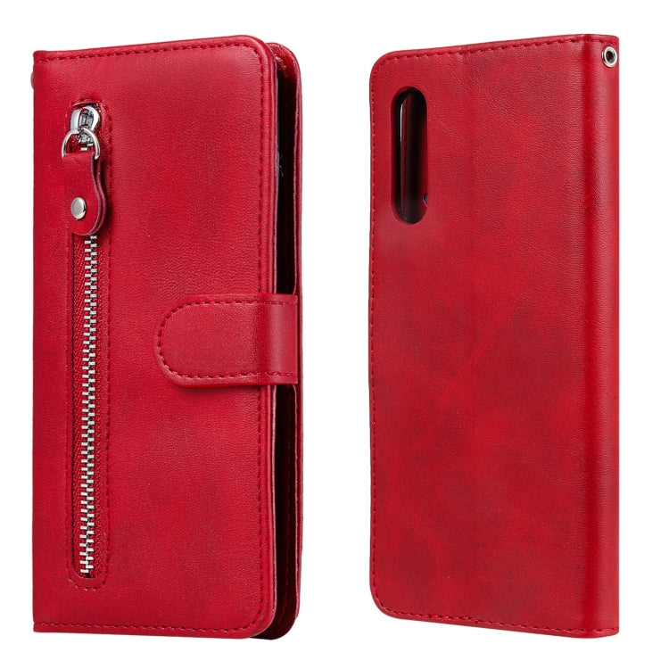 Estuche de Cuero LG Velvet con Cierre Cremallera, Soporte, Ranuras para Tarjetas y Billetera (Rojo)