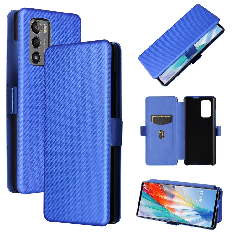 Funda para LG Wing 5G con Hebilla Textura Fibra de Carbono Flip Magnético TPU PC Cuero Pu Ranura (Azul)
