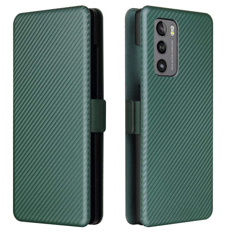 Funda para LG Wing 5G con Hebilla Textura Fibra de Carbono Flip Magnético TPU + PC Cuero PU Ranura Tarjeta (Verde)