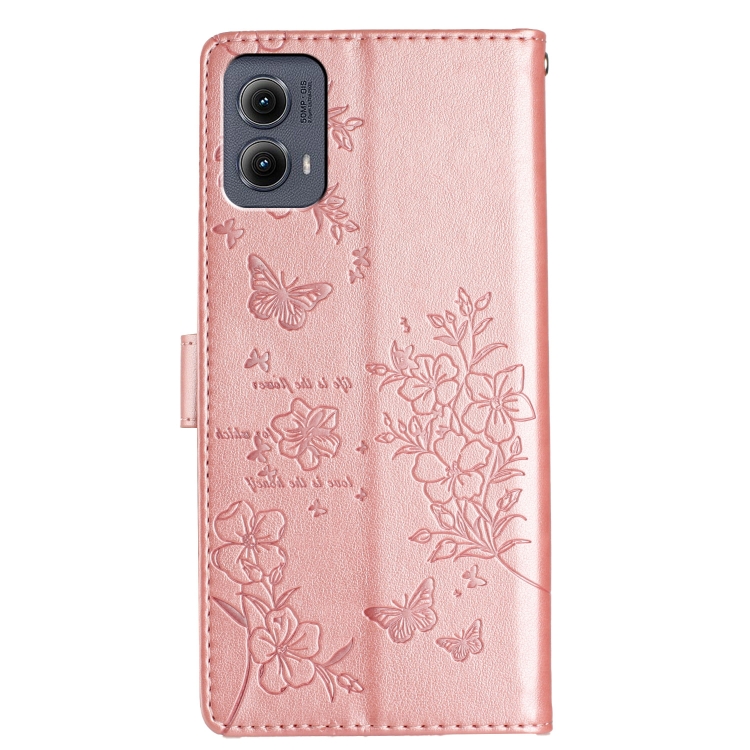 Funda de Cuero para Motorola Edge 2024 con Mariposas y Flores (Oro Rosa)