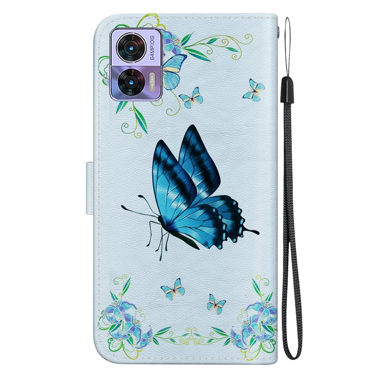 Funda de Cuero para Motorola Edge 30 Neo y 30 Lite con Dibujo Coloreado y Textura de Cristal (Pensamientos Azules)