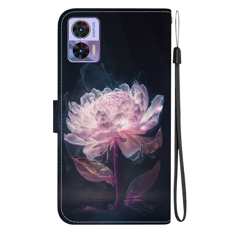 Funda para Motorola Edge 30 Neo y 30 Lite de Cuero con Dibujo y Textura de Cristal (Peonía Púrpura)