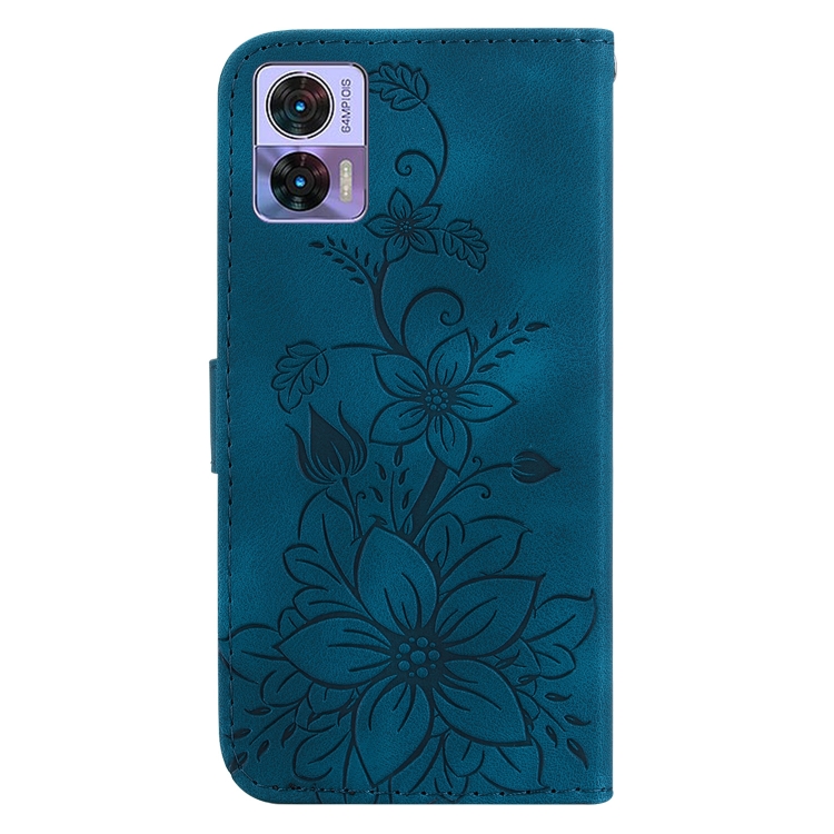 Funda de Cuero con Relieve Lily para Motorola Edge 30 Neo y Edge 30 Lite (Azul Oscuro)