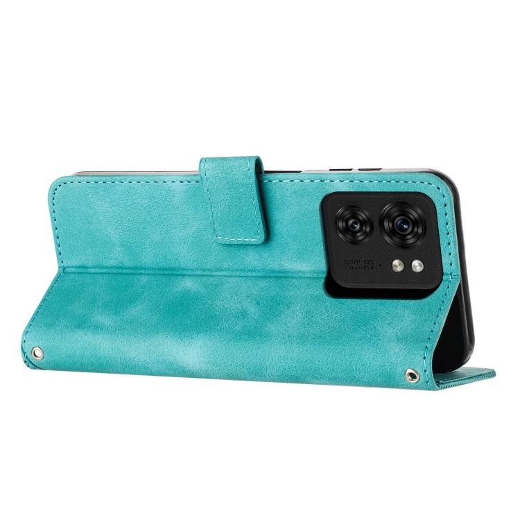 Funda de Cuero con Cordón para Motorola Edge 40 Dream Triangle (Verde)