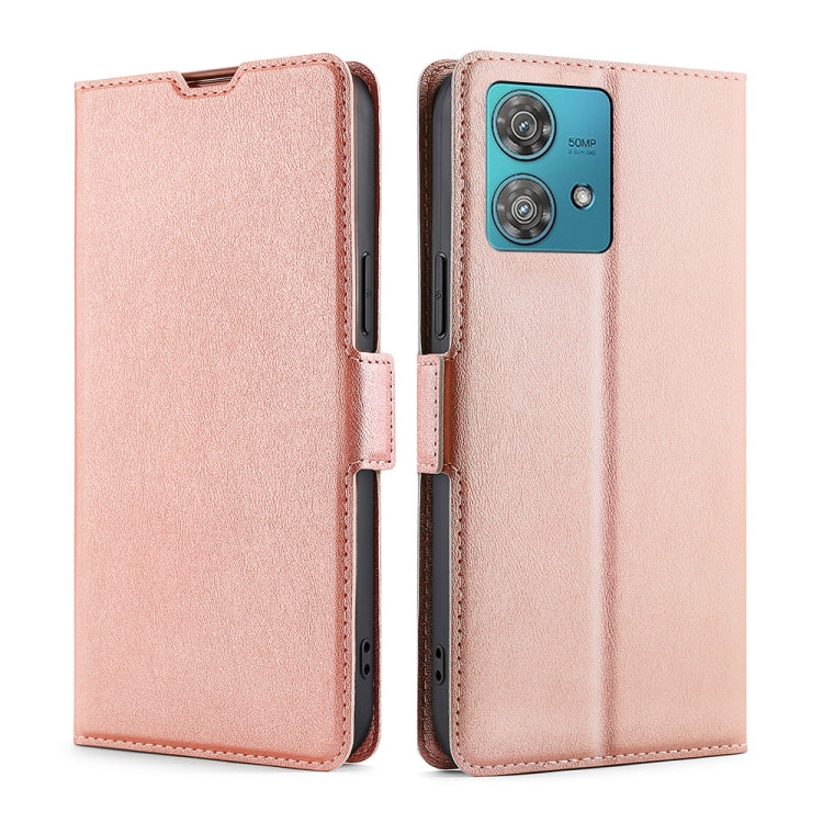 Funda de Cuero para Motorola Edge 40 Neo 5G con Tapa Horizontal y Hebilla Lateral (Oro Rosa)