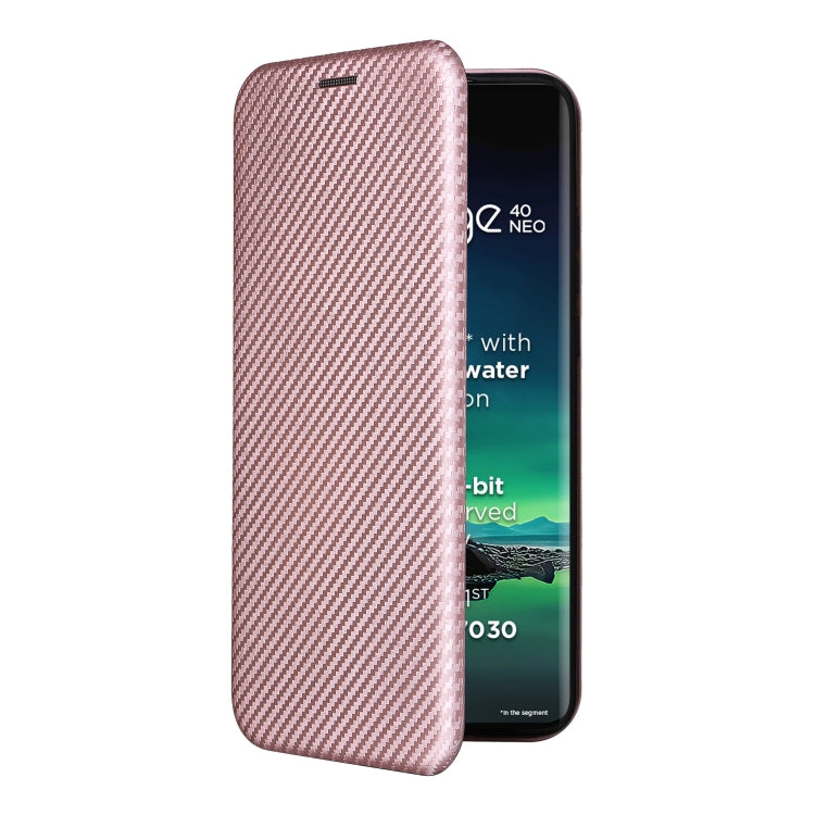 Funda de Cuero con Tapa para Motorola Edge 40 Neo con Textura de Fibra de Carbono (Rosa)