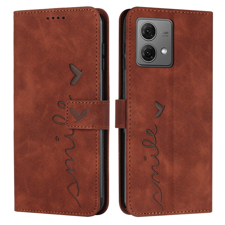 Funda para Motorola Edge 40 Neo Skin Feel Heart de Cuero en Relieve con Cordón Largo (Marrón)