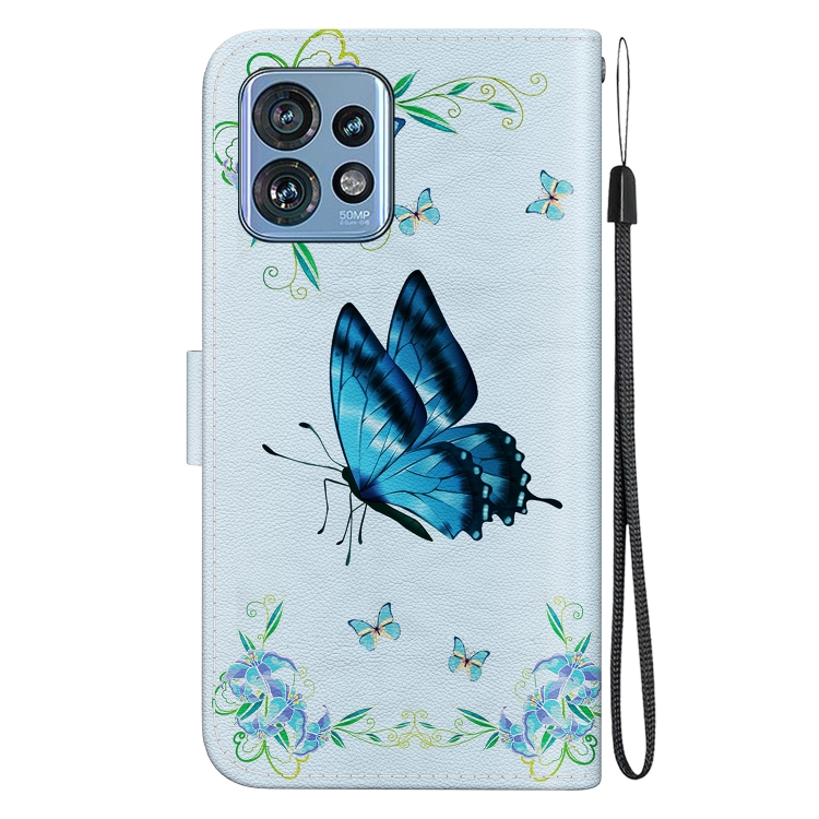 Funda de Cuero para Motorola Edge 40 Pro con Dibujo Coloreado y Textura de Cristal (Pensamientos Azules)