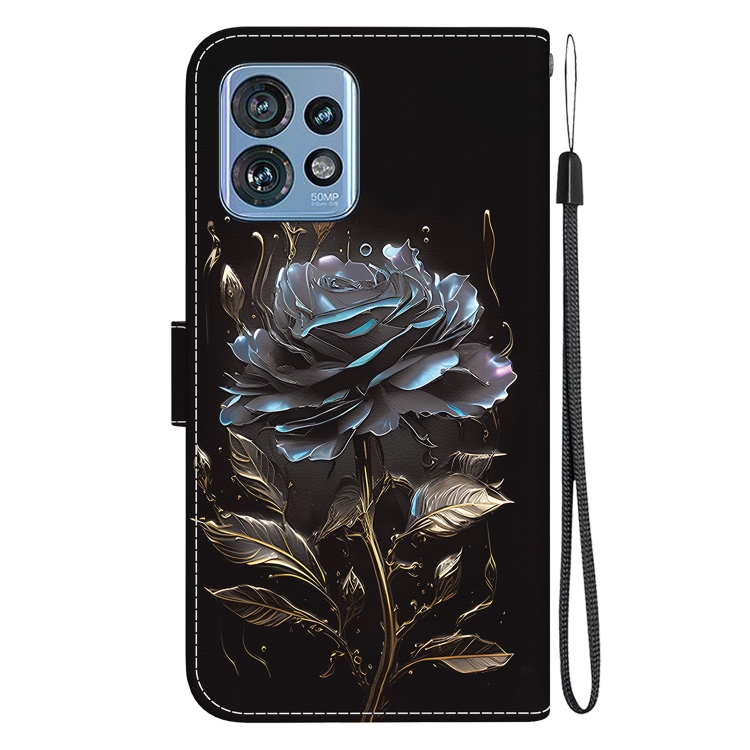Funda de Cuero para Motorola Edge 40 Pro con Dibujo Coloreado y Textura de Cristal (Rosa Negra)