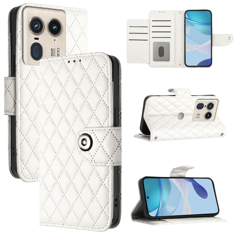 Funda de Cuero para Motorola Edge 50 con Tapa Textura Ultra Romboidal y Cordón (Blanco)