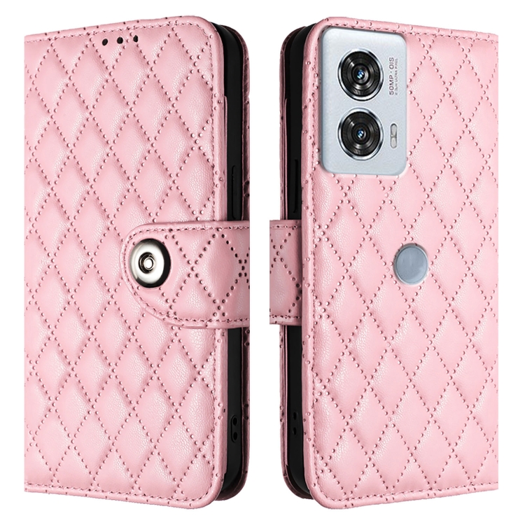 Funda para Motorola Edge 50 Fusion de Cuero con Tapa Textura Rómbica y Cordón (Rosa)