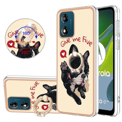Funda para Motorola Moto E13 Galvanoplastia IMD Doble Cara con Soporte para Anillo (Perro de la Suerte)
