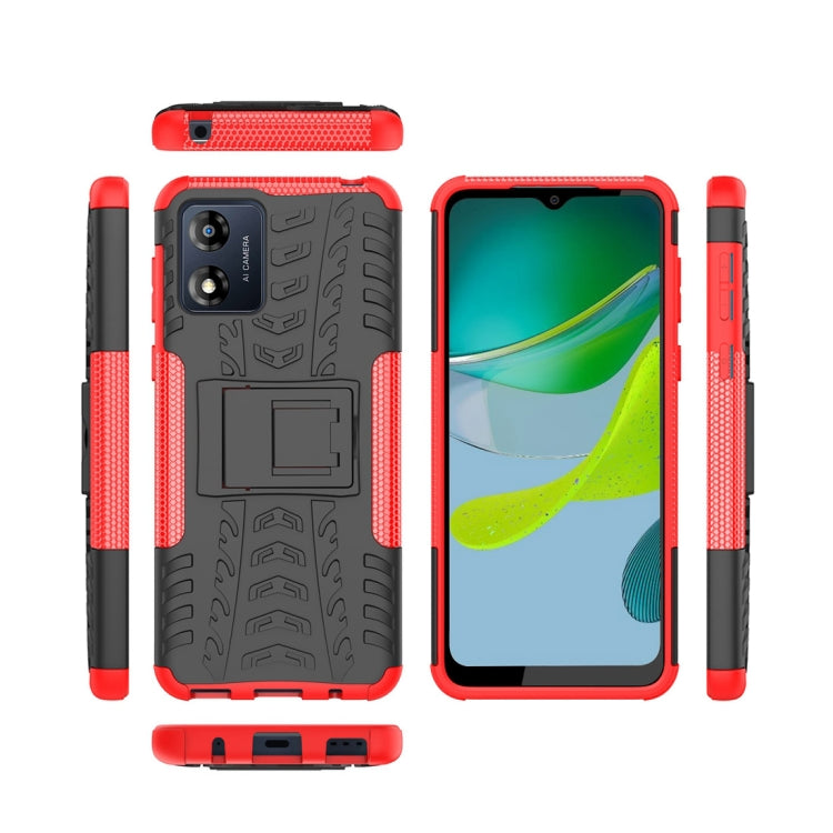 Funda para Motorola Moto E13 Tire Texture TPU + PC con Soporte (Rojo)