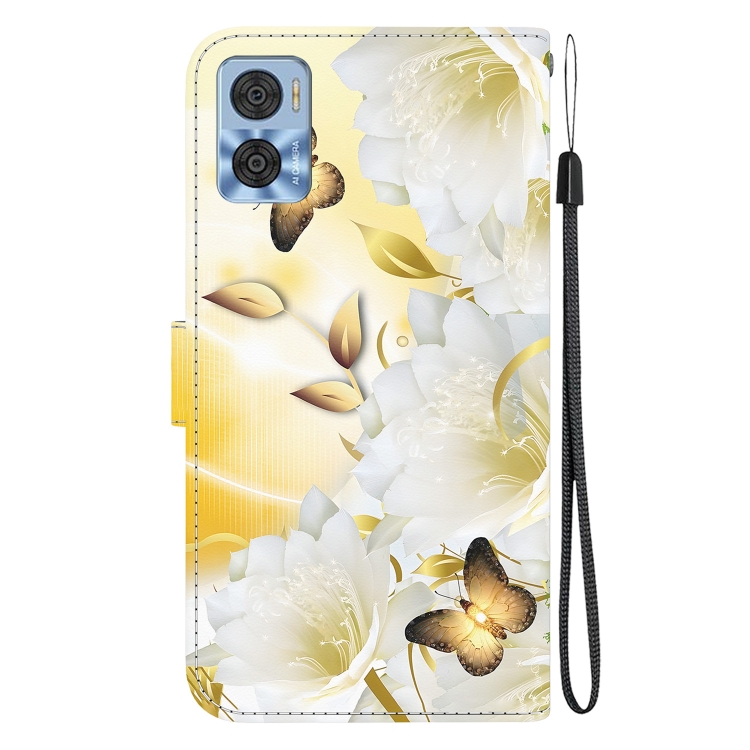 Estuche para Motorola Moto E22 / E22I de Cuero con Dibujo Epiphyllum y Mariposa Dorada (Textura Cristal)
