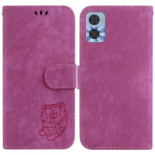 - 1x Funda para Motorola Moto E22 / E22I de Cuero con relieve Little Tiger (Rojo Rosa)