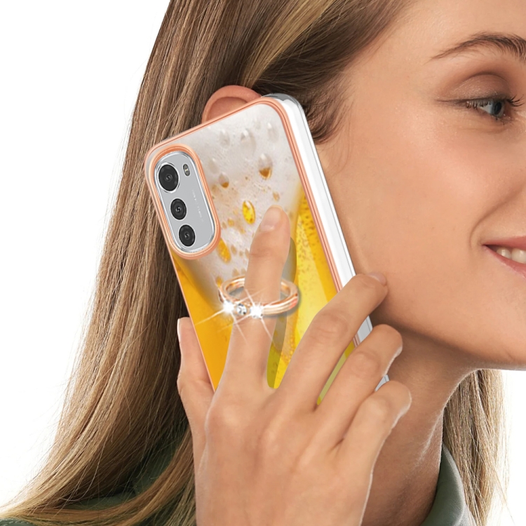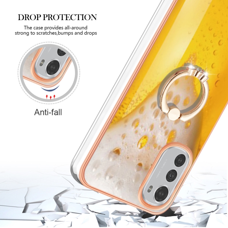Estuche para Motorola Moto E32 4G / E32S Imd Doble Cara con Galvanoplastia y Soporte para Anillo (Cerveza de Barril)