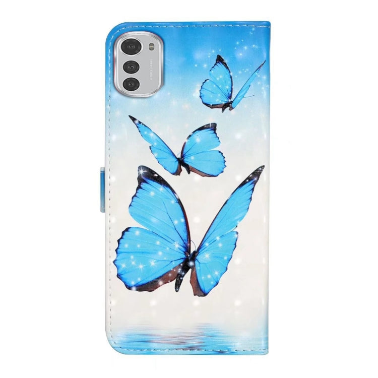 Funda de Cuero para Motorola Moto E32 con Dibujo 3D en Relieve al Óleo (3 Mariposas)