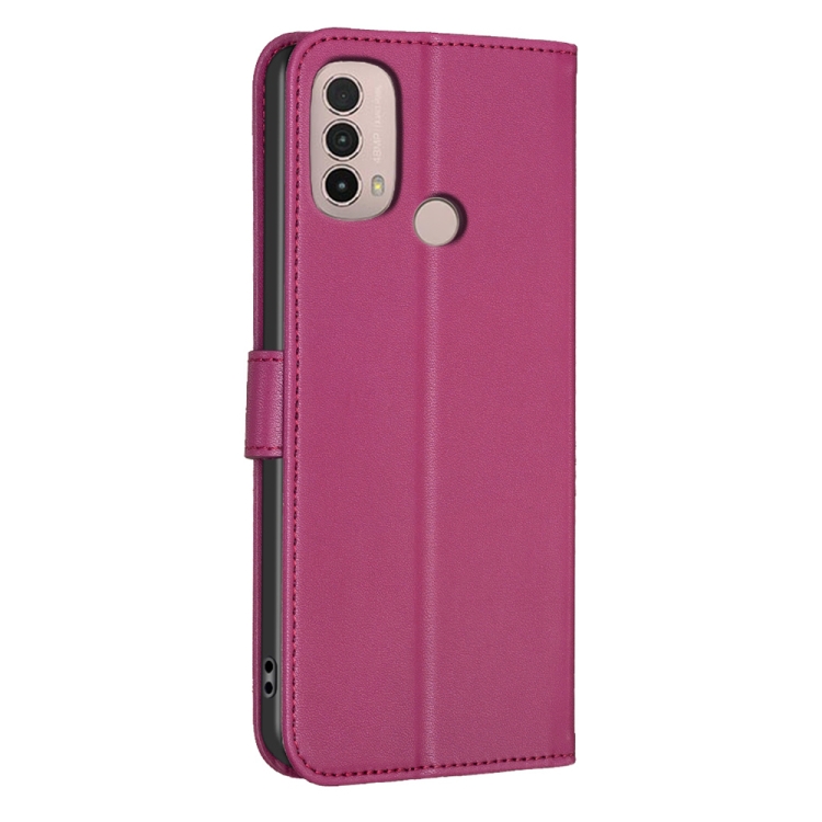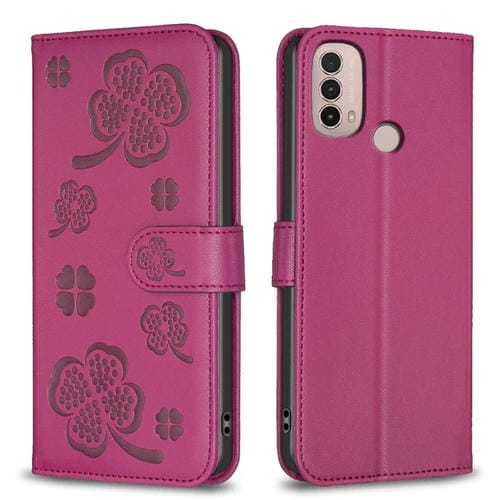 Funda para Motorola Moto E40 / E30 de Cuero con Relieve de Cuatro Hojas (Rojo Rosa)