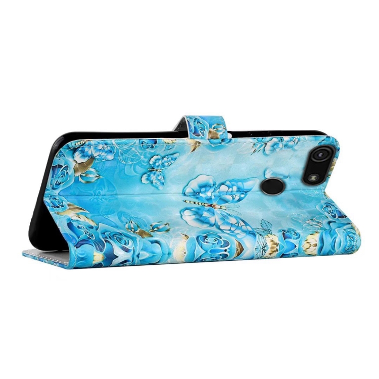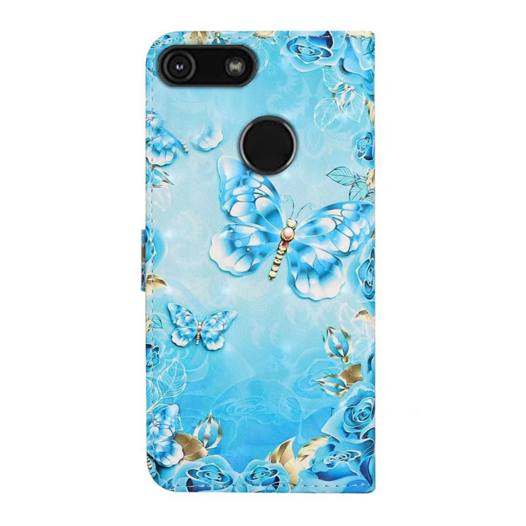 Funda de Cuero para Motorola Moto E6 Play con Dibujo 3D en Relieve al Óleo (Mariposas Azules)