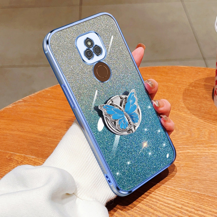 Funda para Motorola Moto E7 Plus de TPU con Soporte de Mariposa y Brillo Degradado (Azul Sierra)