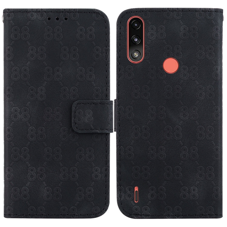 Funda de Cuero para Motorola Moto E7 Power / E7I Power con Relieve Doble Forma de 8 (Negro)