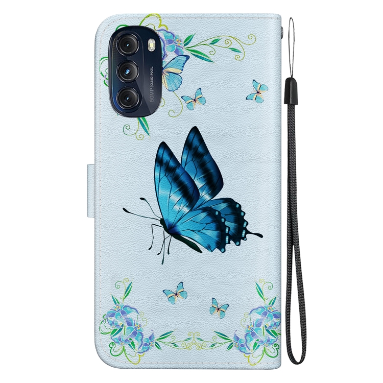 Estuche de Cuero para Motorola Moto G 2022 con Dibujo Coloreado y Textura de Cristal (Pensamientos Azules)