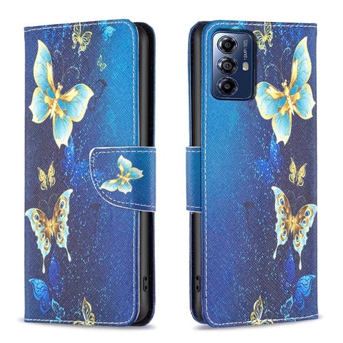 Funda de Cuero para Motorola Moto G Play 2024 con Patrón de Mariposa Dorada
