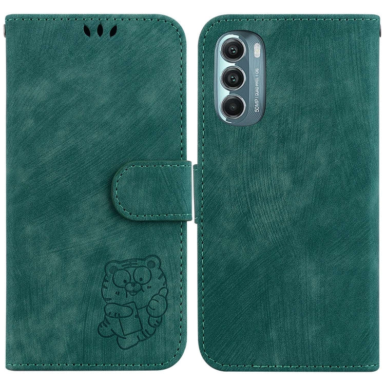 Funda para Motorola Moto G Stylus 5G 2022 de Cuero con Relieve Little Tiger (Verde)